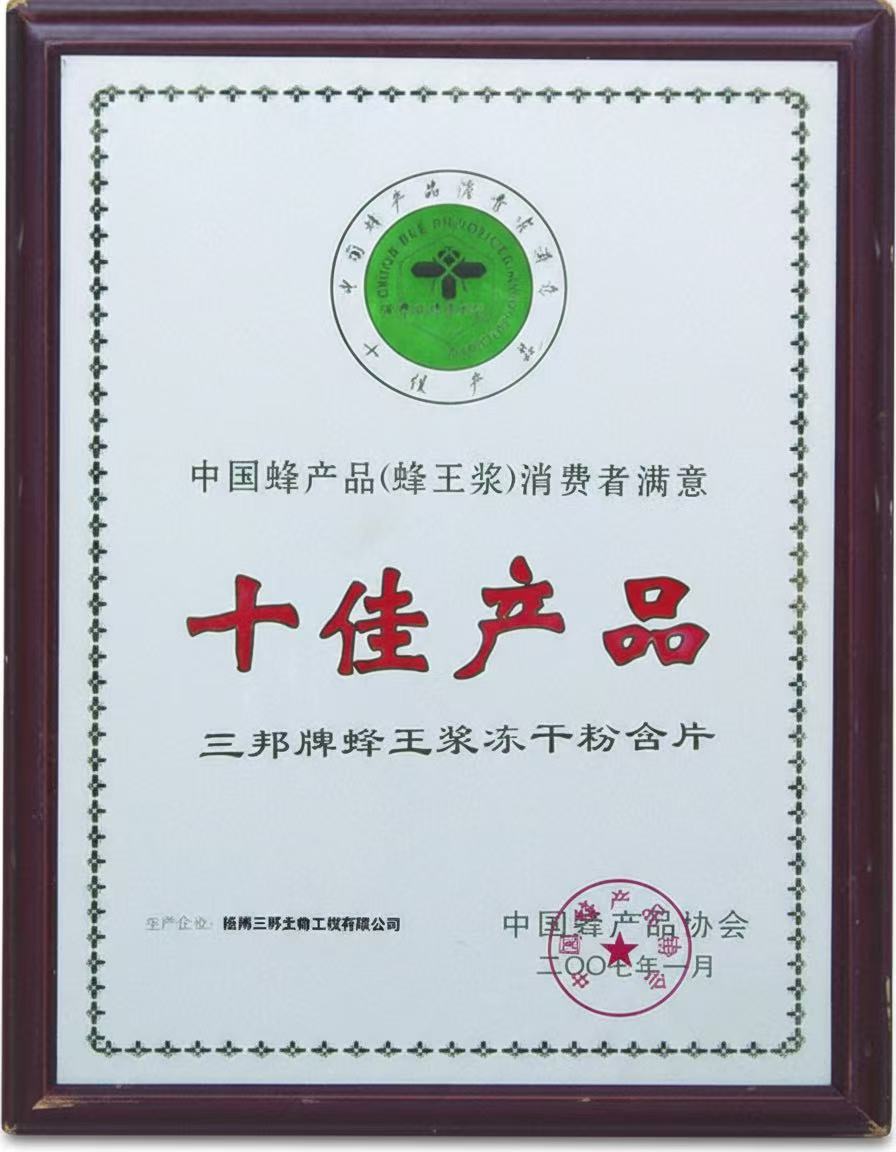 • 中國蜂產(chǎn)品消費(fèi)者滿意十佳產(chǎn)品